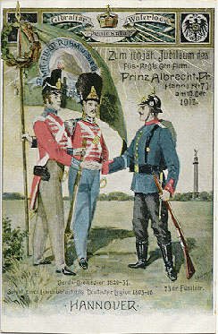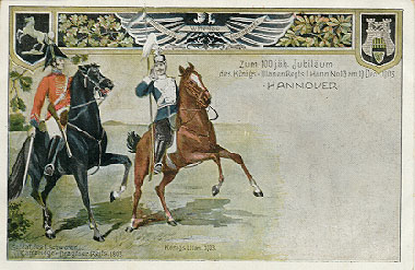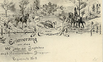 Erinnerungskarte an das 100 jährige Bestehen des 1. Hannoverschen-Dragoner Regiments No. 9 im Jahre 1905