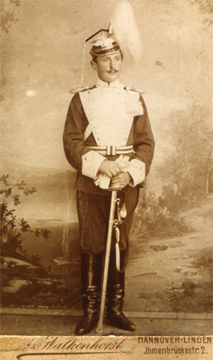Seine Dienstzeit absolvierte er von 1898 - 1901 in der 1. Eskadron Königs-Ulanen Reg. 1. Hannoversches Nr. 13.