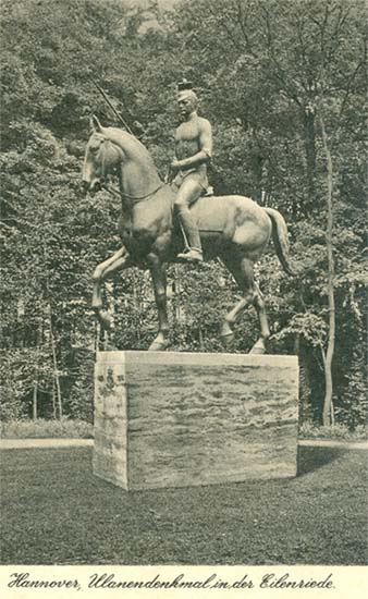 Ulanendenkmal an der Eilenriede (Karte von 1938). Die Reiterskulptur wurde 1927 aufgestellt.