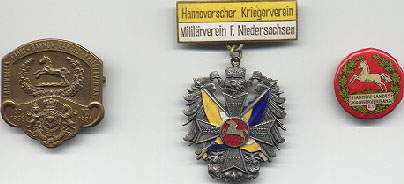 Hannovers Traditionsabzeichen (Links: von 1926, Mitte: vom 21.09.1907, Rechts: unbekannt).