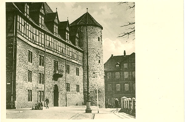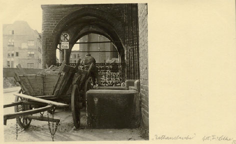Die sogenannte Rathauslaube am Alten Rathaus. Eine Originalfotografie von Fritz Hilke aus dem Jahr 1950.