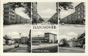 Ein neuer moderner Stadtteil: Vahrenheide 1964. Man beachte den regen Autoverkehr.