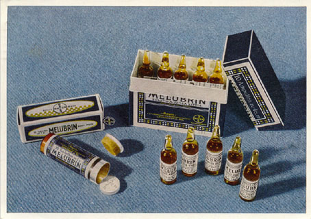Arzneimittelwerbung von 1938. Melubrin von der Firma Bayer in Leverkusen.