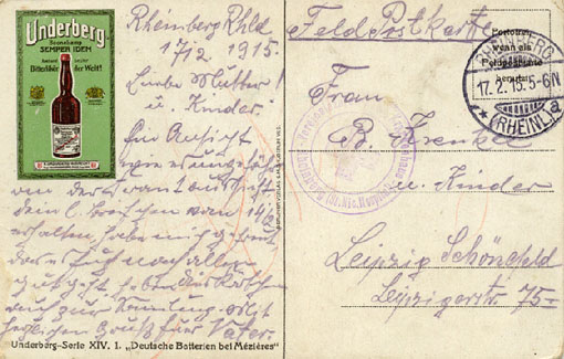 Feldpostkarte vom Februar 1915 mit Underberg-Werbung.