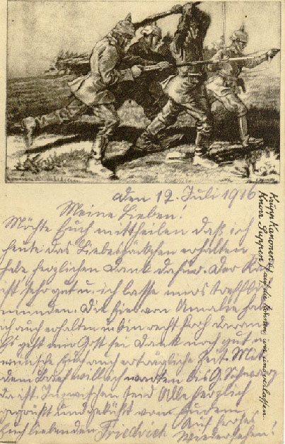 Krupp-Kanonen und Knorr-Suppen auf die können wir uns verlassen! Feldpostkarte vom 13.7.1916,