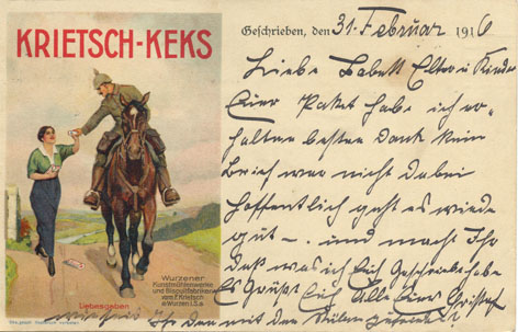 Auch Krietsch-Kekse halfen im ersten Weltkrieg. Karte von 1916.